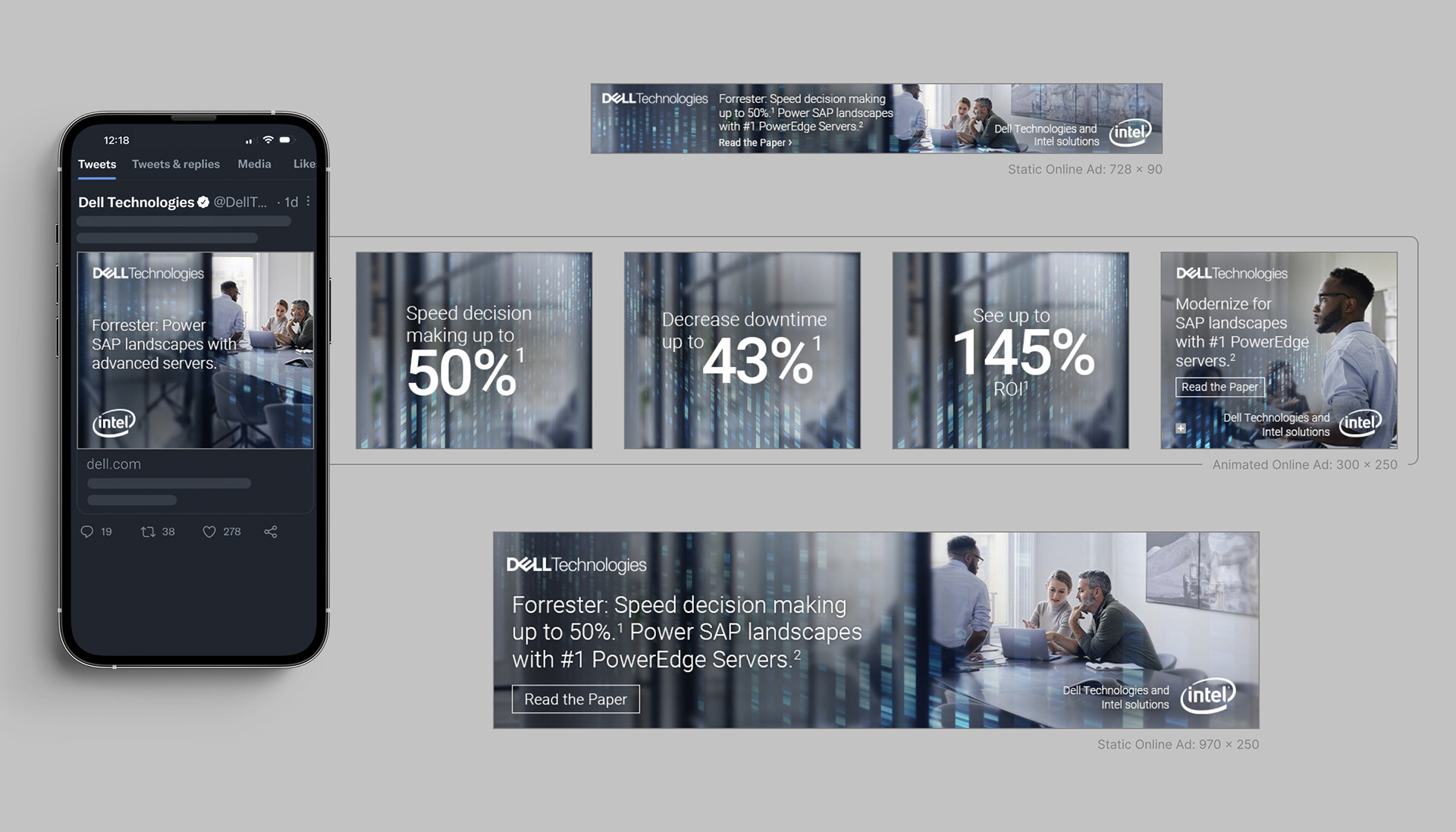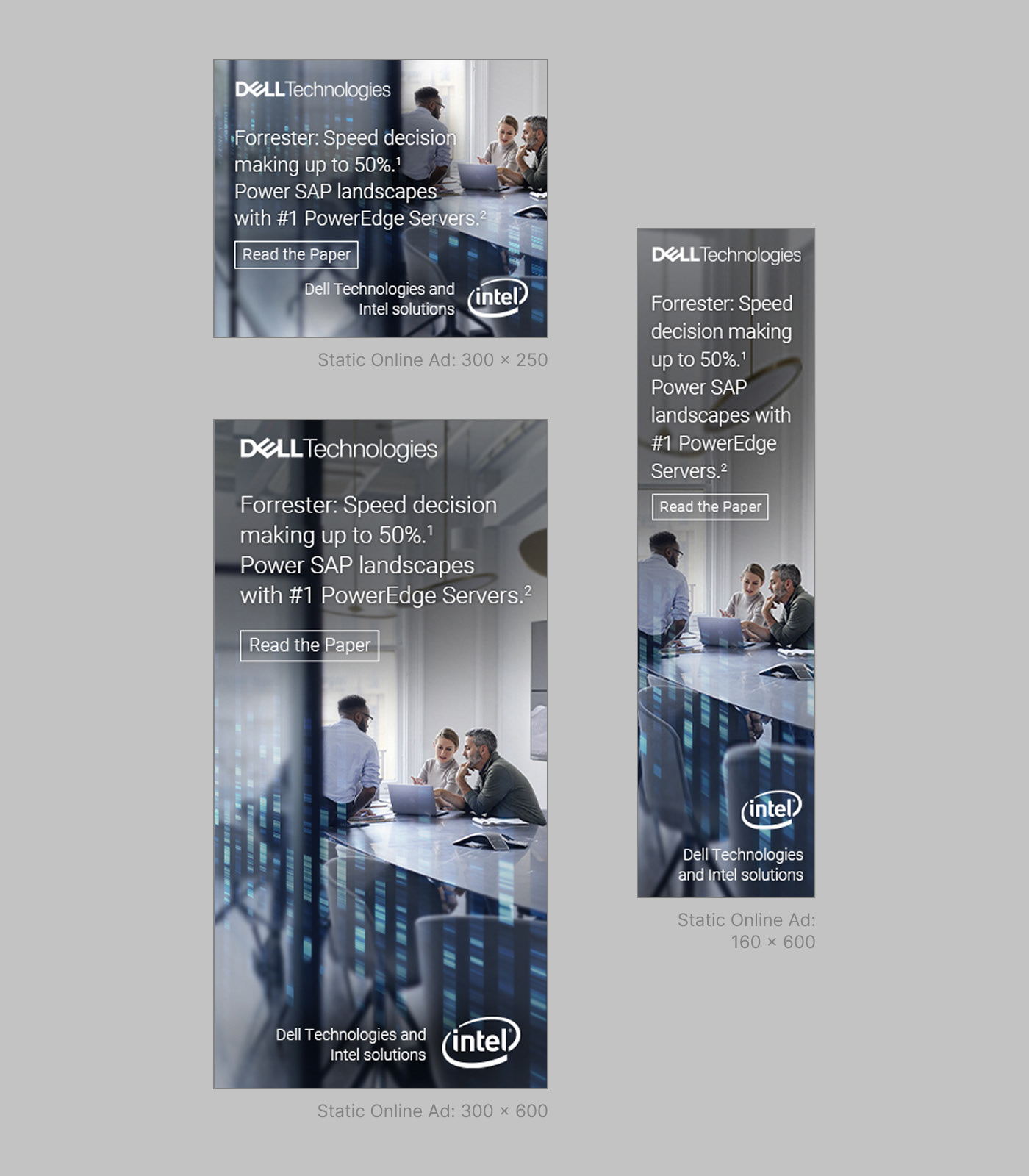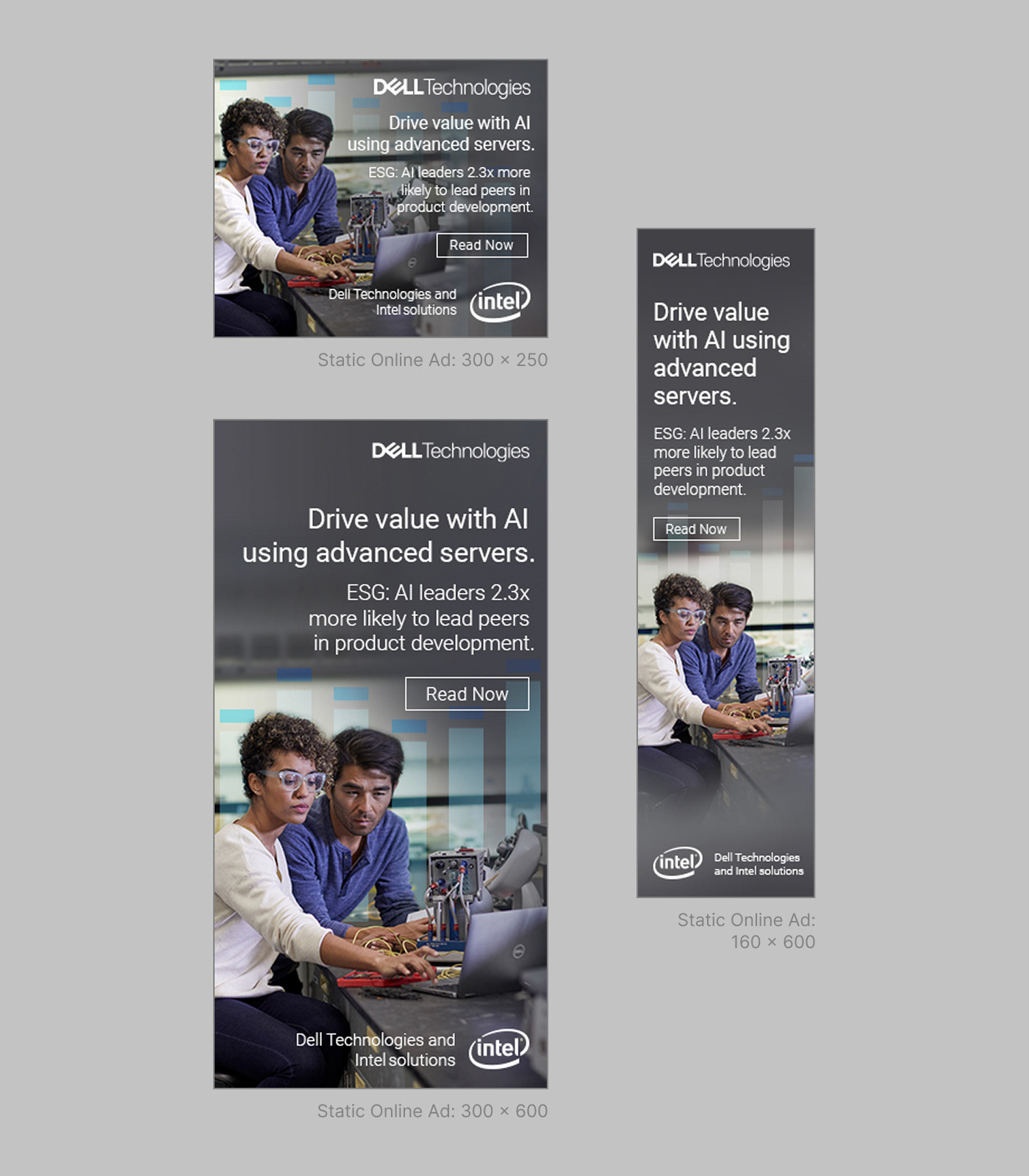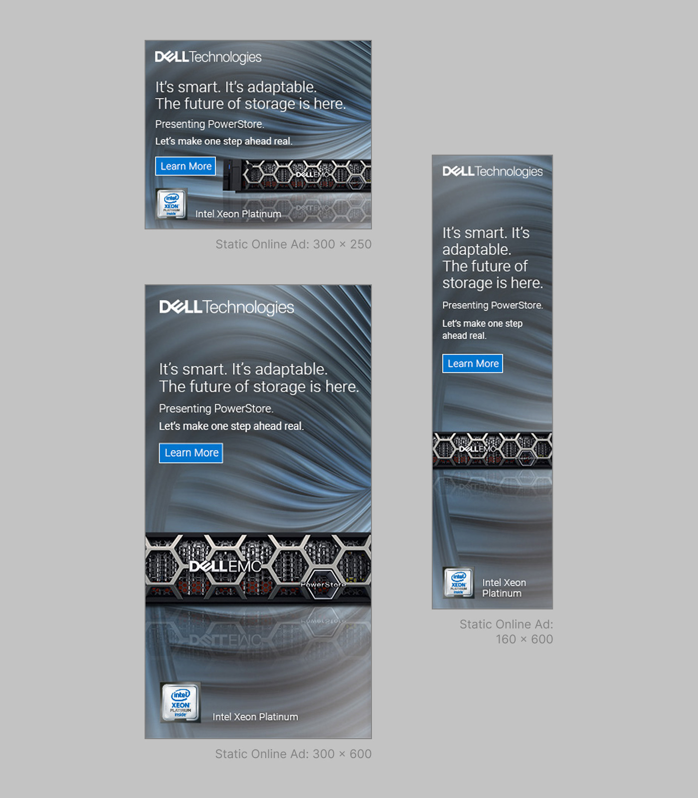 This is a collection of B2B marketing assets and online ads focused on promoting various Dell Technologies' IT products (servers, storage, networking) & services (cloud, data capital, AI). Done while working as an Art Director at Dell Blue, Dell Technologies' internal design agency.