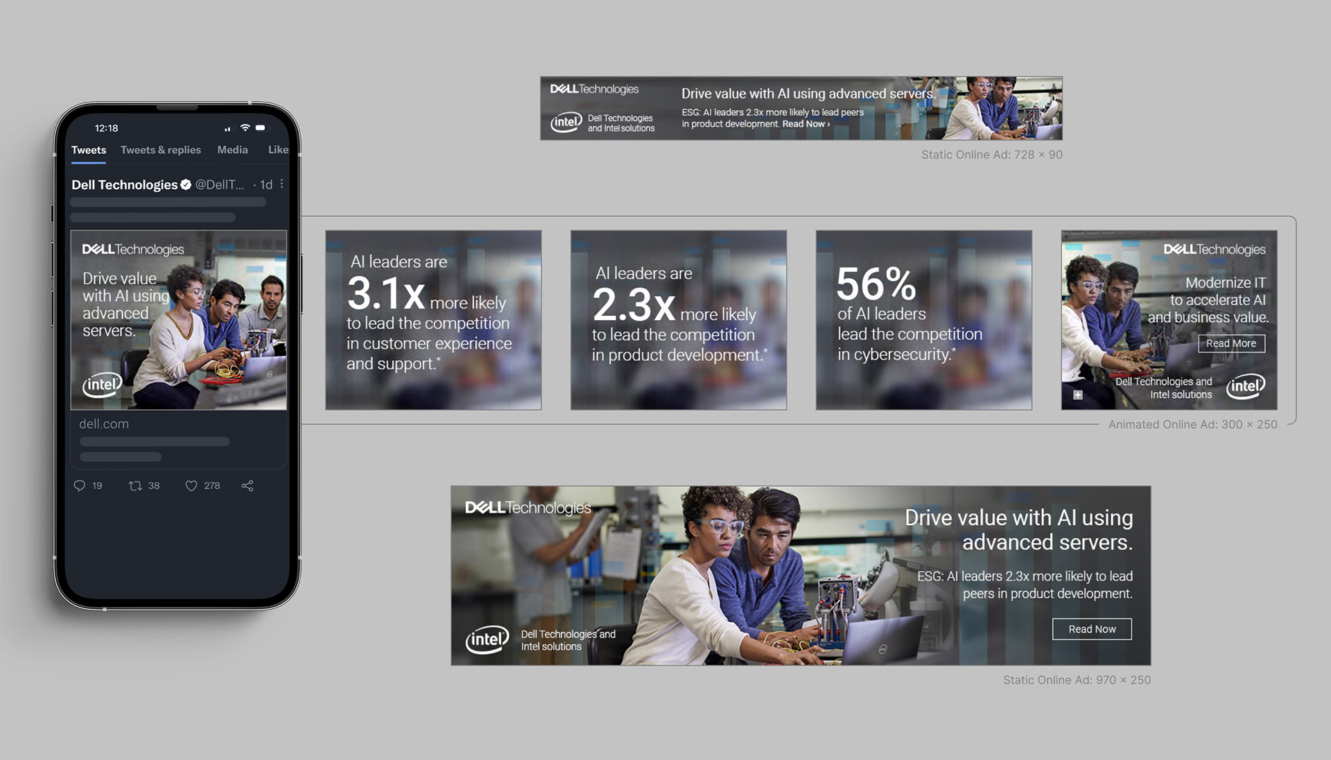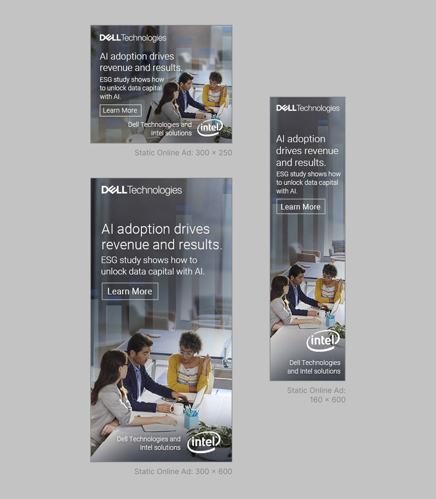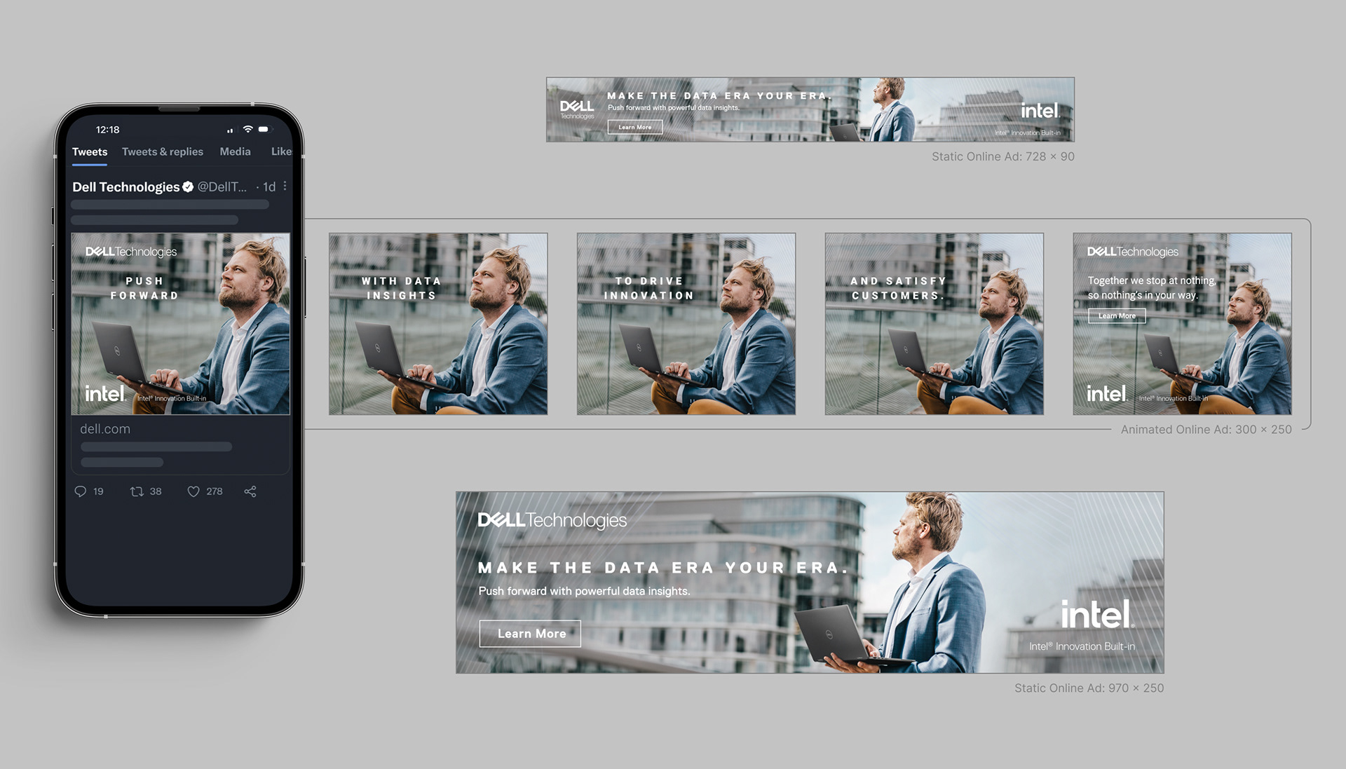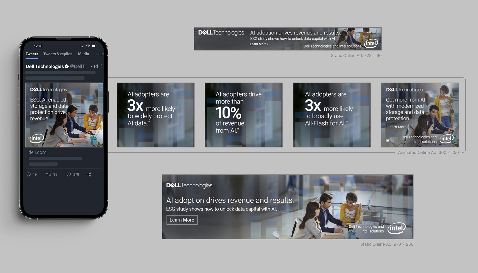 This is a collection of B2B marketing assets and online ads focused on promoting various Dell Technologies' IT products (servers, storage, networking) & services (cloud, data capital, AI). Done while working as an Art Director at Dell Blue, Dell Technologies' internal design agency.