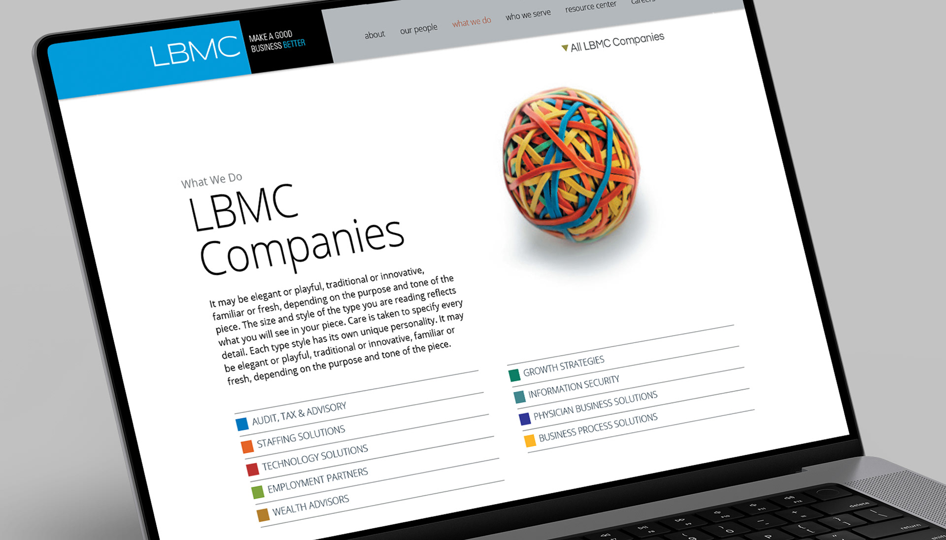 - Developing a color-coding system that differentiates each company from the global LBMC identity.