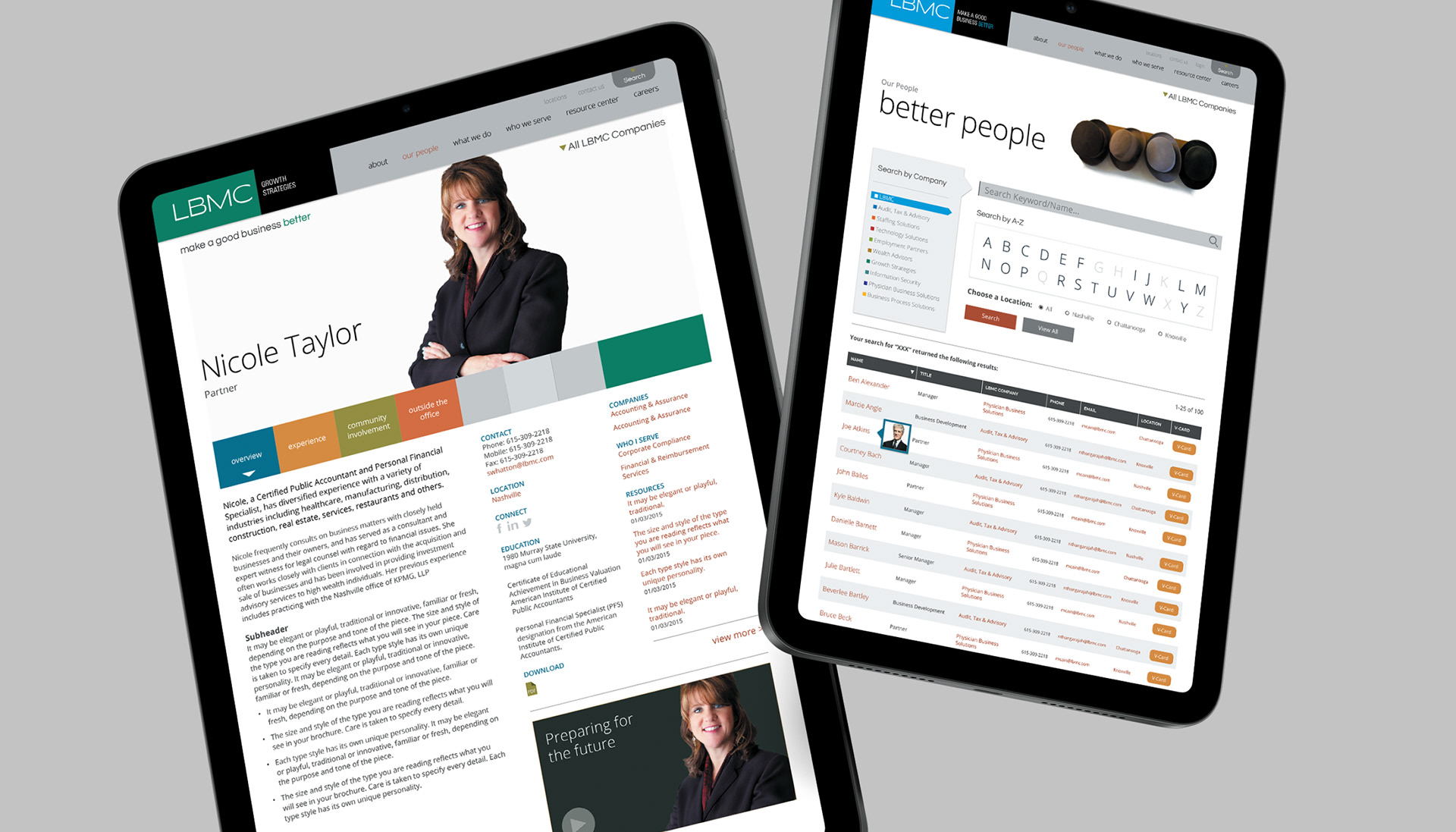 - Developing a color system that differentiates each company while adhering to global LBMC identity